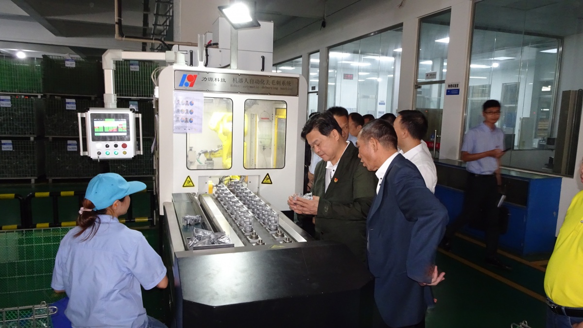 梁耀鈞領導一行在我司總經理黃均泉、支部書記陳煥祿等領導的共同陪同下,先后到我司壓鑄車間和CNC車間生產現(xiàn)場的自動化設備進行參觀了解,詳細了解廣東力源科技股份有限公司發(fā)展情況、產品生產流程和操作過程;總經理黃均泉特別介紹了新引進及自主研發(fā)的自動化設備操作系統(tǒng),響應新時代時期追求科學創(chuàng)新的發(fā)展需求,得到現(xiàn)場參觀的梁耀鈞等領導同志的充分認可。